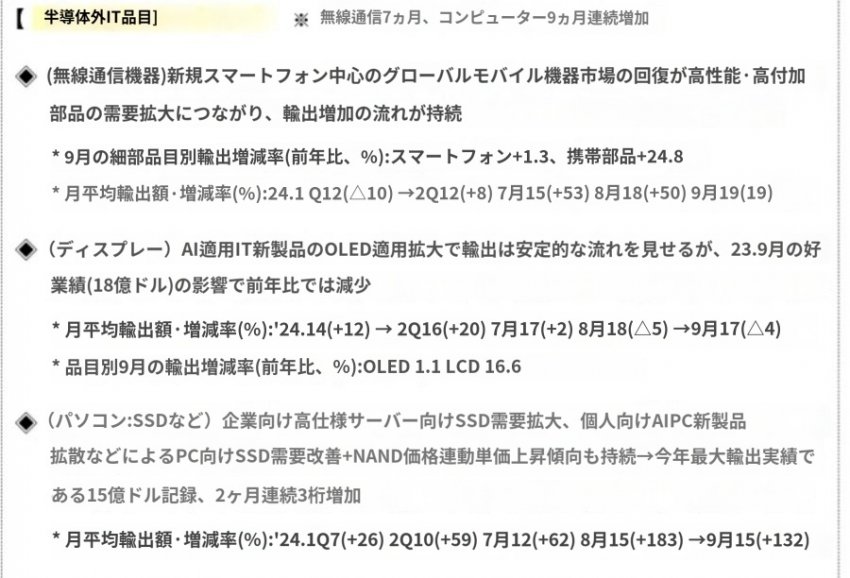 これに対し、第3四半期の輸出は前年より10.7%増の1739億ドルで、貿易収支は139億ドルの黒字を記録した。 半導体の輸出は四半期基準で歴代最大の実績である367億ドル(41.4%)に達した。
