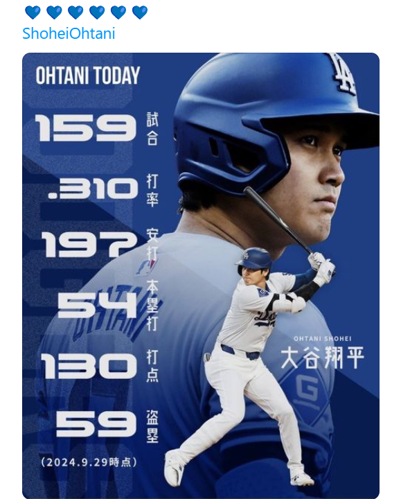 チームプレーに徹しています。ランナーが入ればほぼ右狙いの進塁打をうとうとしています。盗塁に付いても無理しないで静観する場面も多々ありました。ここで盗塁死となると流れが悪くなってしまう場合には走っていません。ホームランがライナー無しが多いのもランナーがいれば進塁打を狙ったからです。徹底したフォアザチームがドジャースに良い影響を与えたと思います。金倒永は「40―40」に2本届かず それでも「大谷翔平のライバルになりつつある」と韓国報道