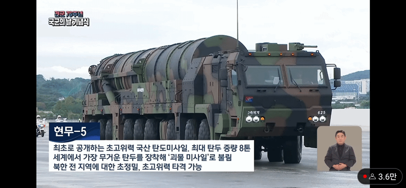 대한민국, 세계최강의 재래식 탄도 미사일 "현무 5"를 공개에