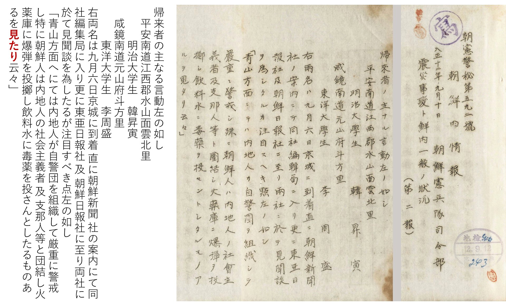 訂正、震災の活動家の情報を、朝鮮総督府の警察がまとめたものだな。>>80