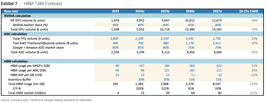 모건스탠리의 최근 HBM 시장 전망