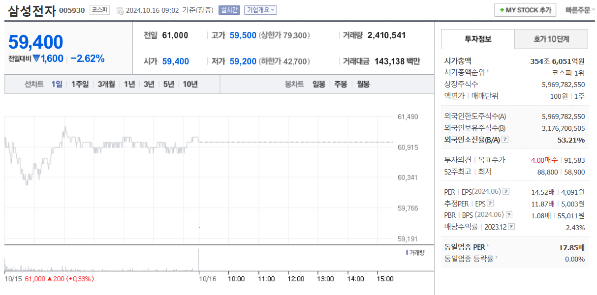 10/15 61,000 KRW (株式時価総額 404.9 兆KRW) -30.4%