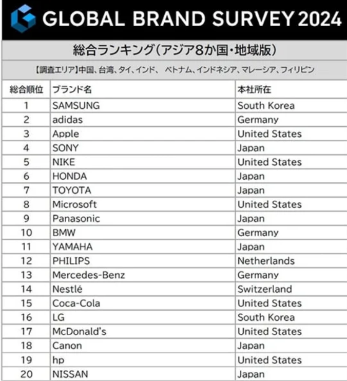 아시아 브랜드 1위는 'SAMSUNG' 日 닛케이리서치 조사