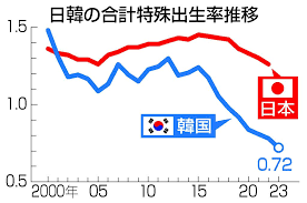 それで現在の出生率は韓国のほうが上なわけ?可愛そう