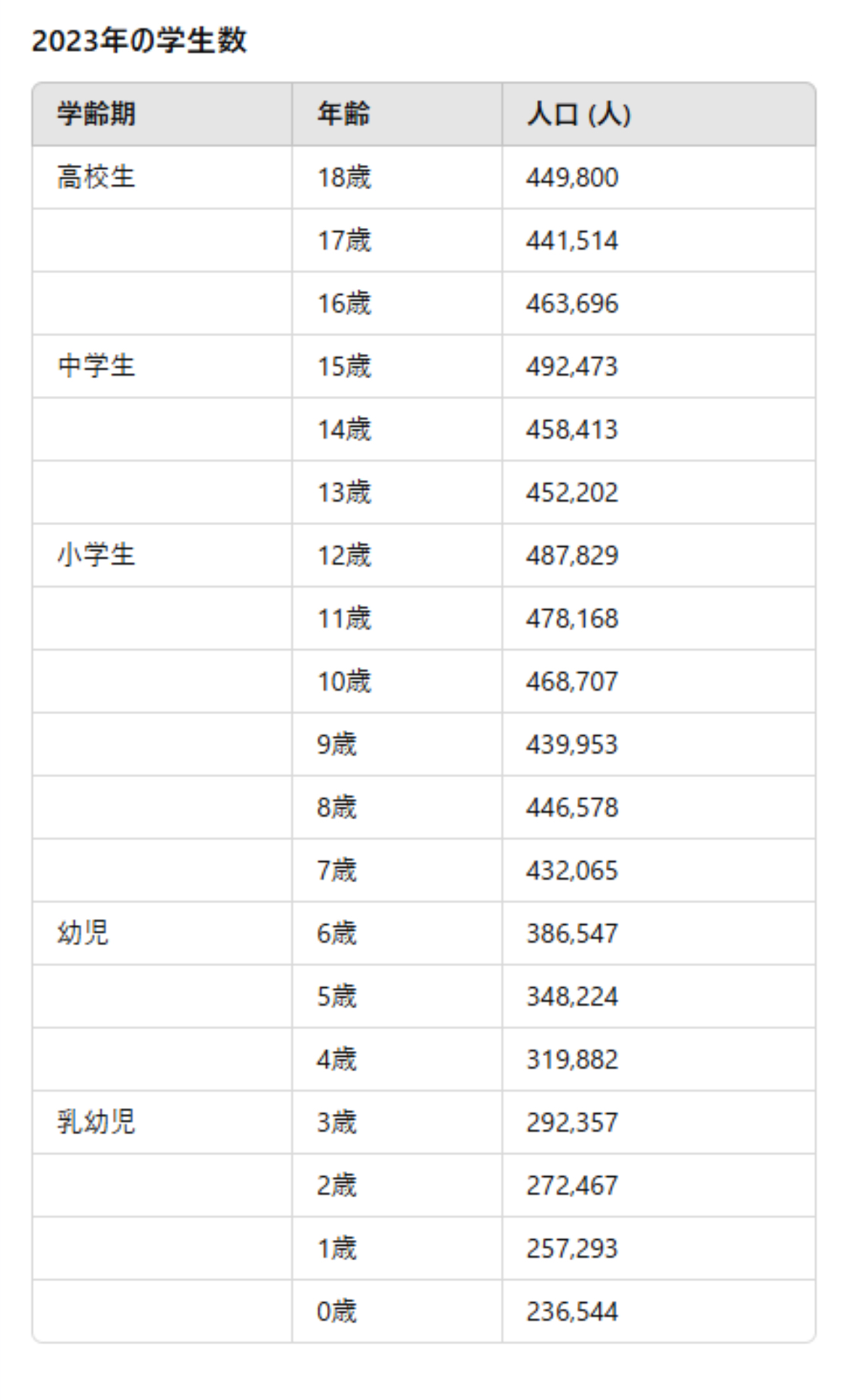 新生児の総数が前年度より増えたわけではなく、老齢者も減らない。