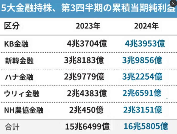 한국 5대금융, 3분기 누적 순익 16.6조원 역대급