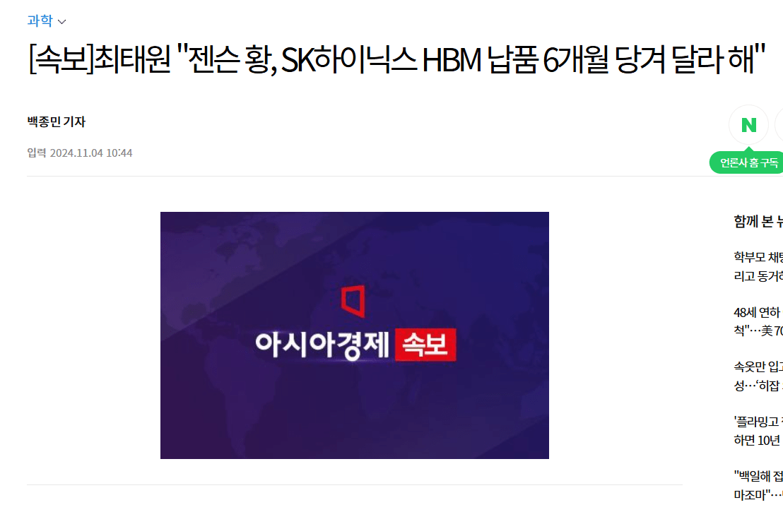まだ設計すらされてないHBM4の供給を6ヶ月ふやそう?w속보)하이닉스,16단 HBM3E 세계 최초 공개