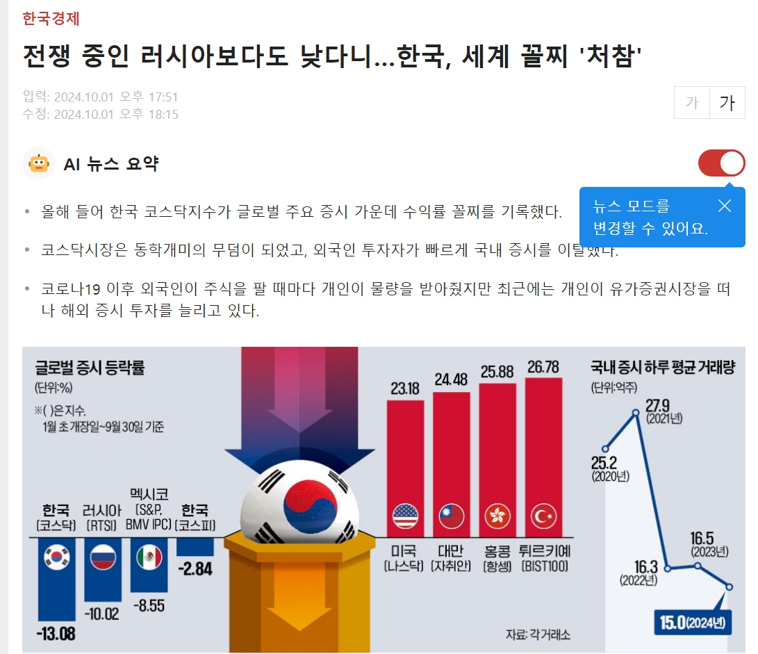 COVID-19以降、外国人が株式を売るたびに個人が物量を受け入れてくれたが、最近は個人が有価証券市場を離れ、海外証券市場への投資を増やしている。>>94