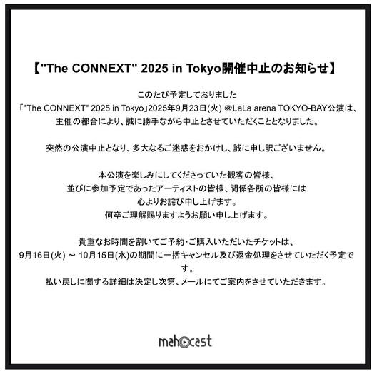 ー 日韓共同オーディションから誕生した7人組ボーイズグループ「aoen」やデビュー2年目の同「NEXZ」が出演予定だった 9月23日開催の大型イベント「The CONNEXT」が、20日までに中止になった。