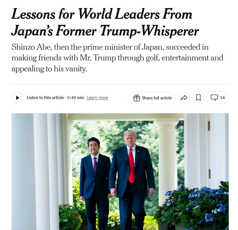 아베 신조와 트럼프라면 이것이 기억나네요.