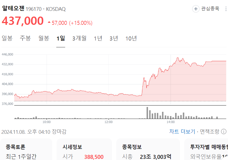 来週にはアルテオゼン関連ニュースが英語+日本語でグローバルに報道され、本格的にハイライトを受けるようだ。 ある意味、今日はアルテオゼンを着実に見守っていた株主たちだけの祭り(?)だったとすれば、来週からはアルテオゼンをスイカの空振り式で知っていた市場参加者たちが一歩遅れてでも参加することになりそうだ。