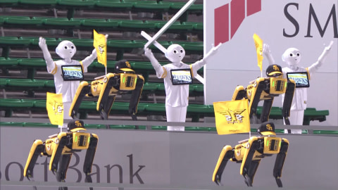 ソフトバンクでは2017年6月、当時グーグル傘下だったボストン社を買収。ボストン社はスムーズな歩行などが印象的なロボットを手掛けており、同社製の「Spot」とPepperが今夏、福岡PayPayドームで、福岡ソフトバンクホークスを応援する姿も見られた。- 15