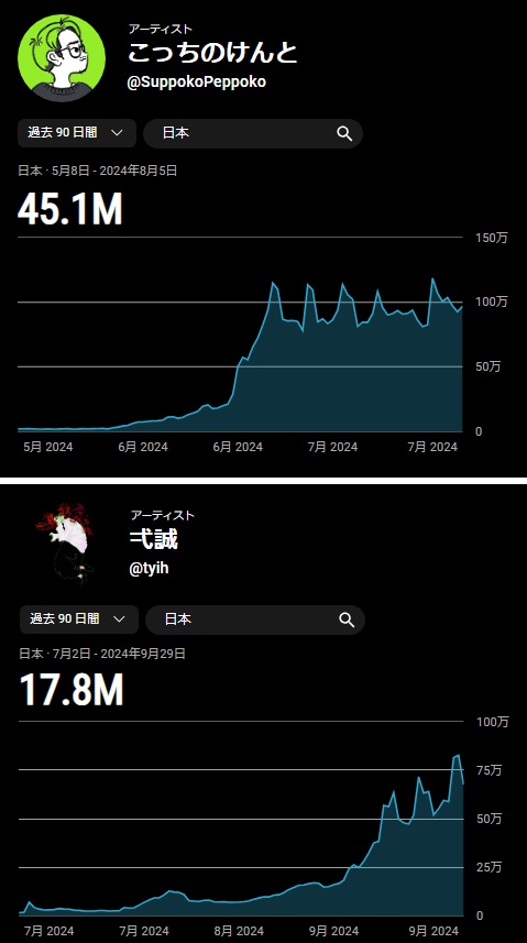 Creepy Nuts 4億6700万 DECO*27 2億9800万 ちゃんみな 2億3400万