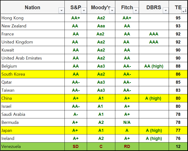 となっていて、南朝鮮は悪くはないが日本より市場関係者が高く評価しているわけではないわな。>>1