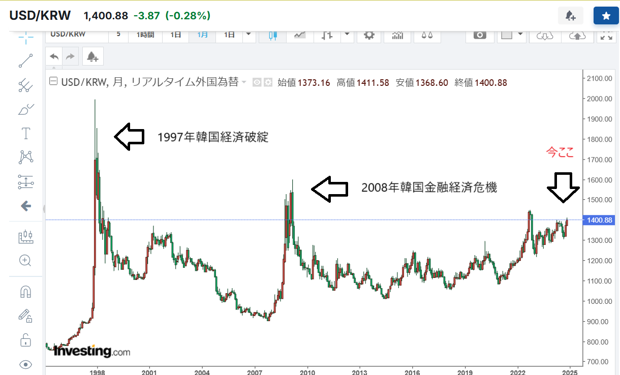 政府の口先介入にもウォン相場は1ドル=1400ウォン台