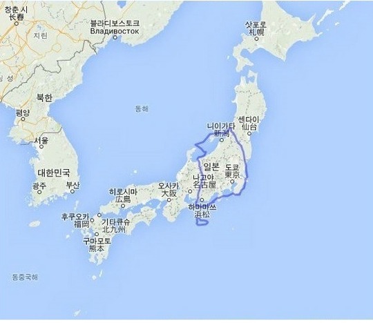 東京から大阪(直線距離は400km)>>>ソウルから釜山(直線距離は325km)
