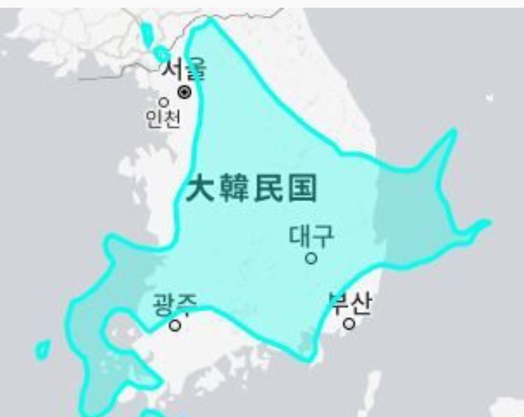 大韓民国は北海道よりは少し大きい。小韓共和国に、改名しろ