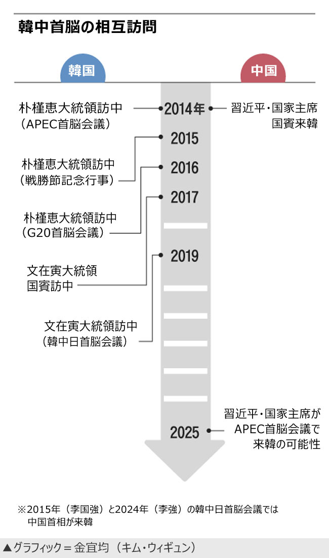 尹大統領と習主席は韓中自由貿易協定(FTA)後の交渉に力を入れることでも一致した。中国における韓国人のビザ免除、空席状態の駐韓中国大使任命に続き、2年ぶりの首脳会談も実現すれば、韓中関係は改善に向け本格的に動き出すことになる。