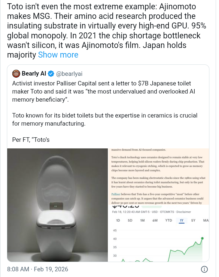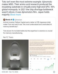 AIインフラの最も重要なレイヤーは、トイレ、MSG、ガラスメーカーが担ってることすら知らない無知な朝鮮人