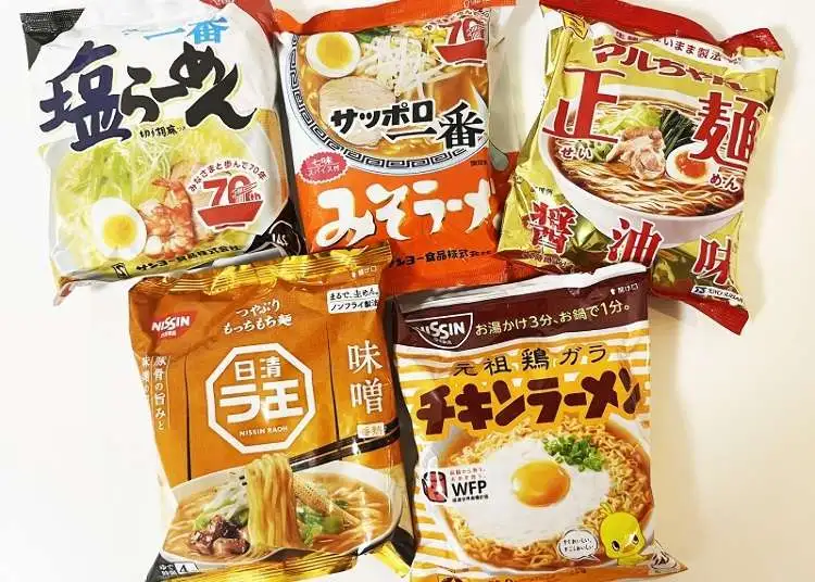 他には日清の出前一丁、サッポロ一番ごま味醤油ラーメン。