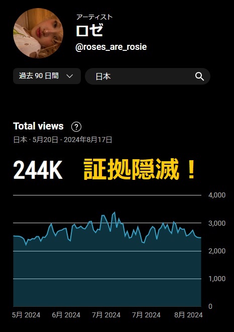 BLACKPINK の再生工作で手一杯だったから、それより何桁も少ない ロゼさんの契約実行実績のチェックまで、手が回らなかったのかしらん?