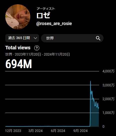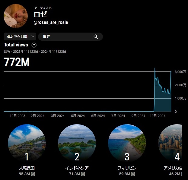 てなわけで、本当は、ロゼさんは日本では1日200回程度分の人気しかないアーティスト。