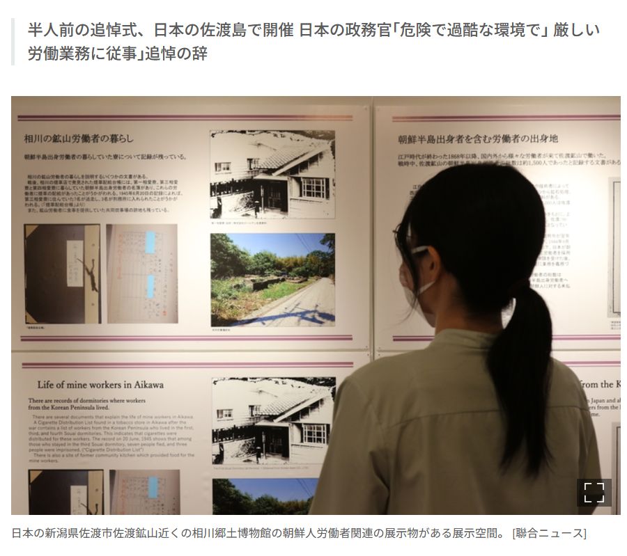 日本の佐渡鉱山追悼式実行委員会はこの日午後、佐渡島の西側にある佐渡市の相川開発総合センターで自国の人士だけが参加した中で「佐渡鉱山追悼式」を開催した。