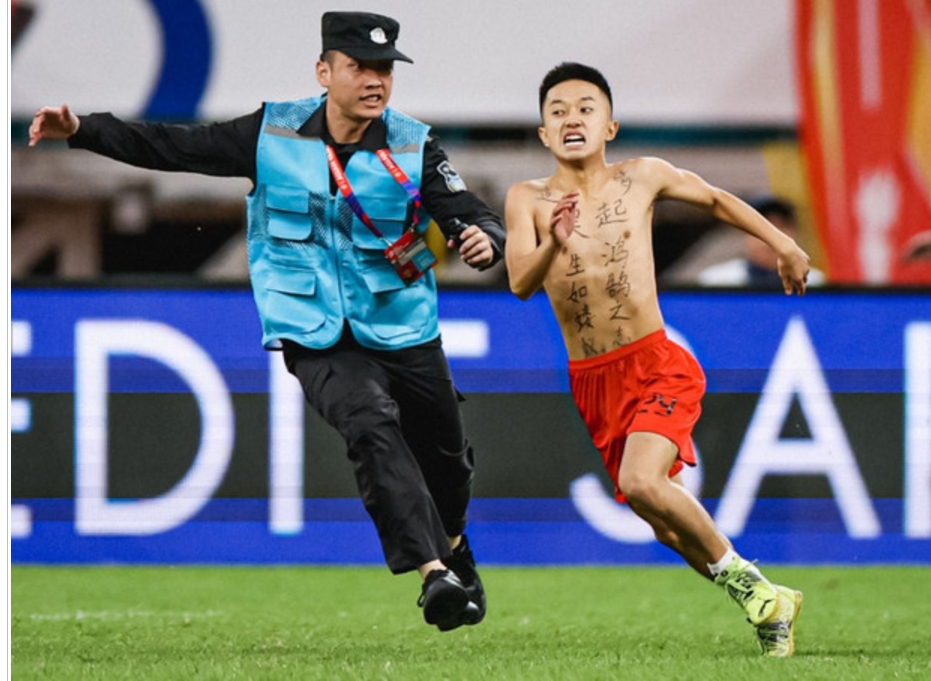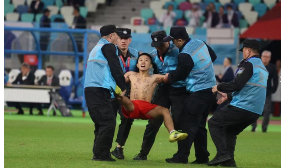 결국 경찰이 나서 남성의 유니폼을 벗길 때까지 중국 팬들의 흥분은 가라앉지 않았습니다.
