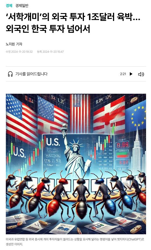 ‘서학개미’의 외국 투자 1조달러 육박…외국인 한국 투자 넘어서