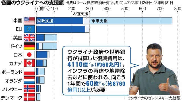 한국 정부는 지난 4월 미국에서 열린 제5차 우크라이나 지원회의에서 중장기적으로 21억 달러(2조 8595억원) 규모 대외경제협력기금(EDCF)을 우크라이나에 집행하겠다고 밝힌 바 있다.>>218