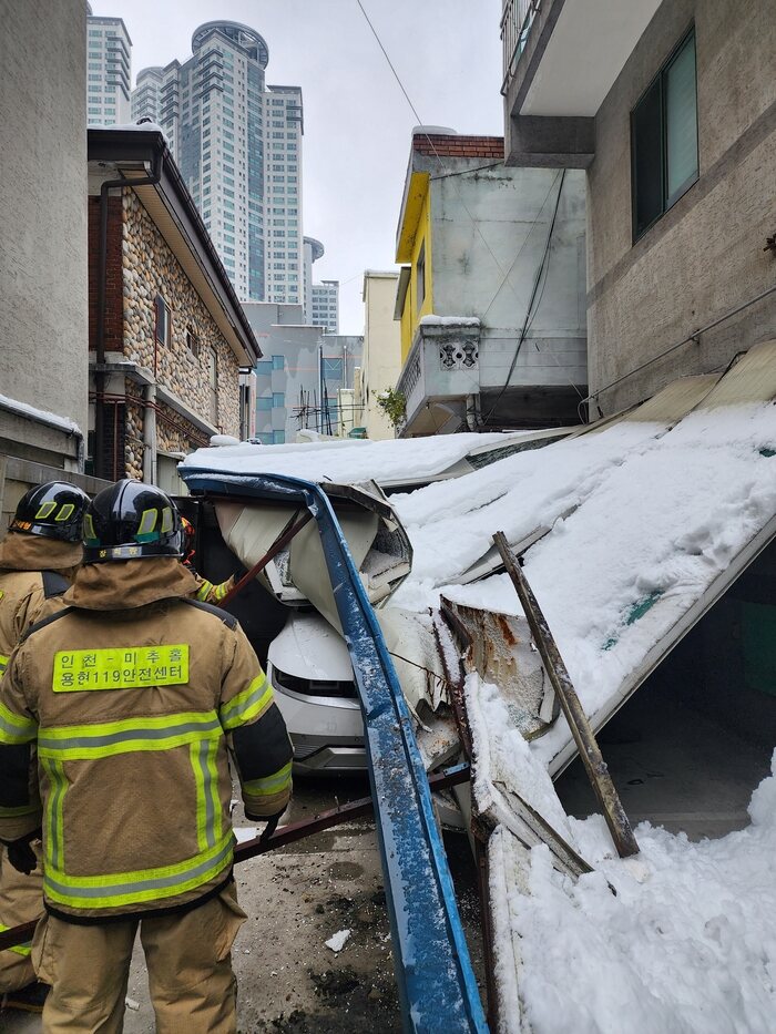 仁川市弥鄒忽区のセルフ洗車場の屋根と桂陽区のマンション駐車場の出入口の屋根も崩壊した。