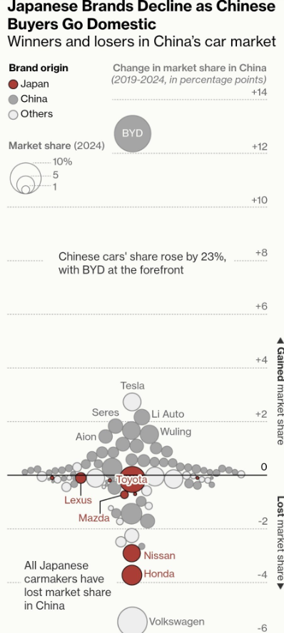 게다가 전기차 기술이나 배터리에서 중국이 일본보다 훨씬 앞서기에 관세가 있지만 미국 유럽 시장에서도 똑같은 일이 일어나지 말란법 없기 때문.