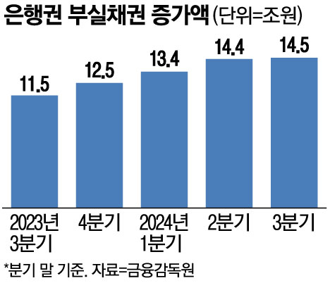 29日、金融監督院が発表した「9月末の国内銀行不良債権現況」資料によると、第3四半期の銀行圏不良債権(固定以下与信)は第2四半期に比べて1000億ウォン増えた14兆5000億ウォンを記録した。 2020年第2四半期(15兆ウォン)以後、最も高い水準だ。 固定以下与信は3ヵ月以上延滞され、回収の可能性が低い不良融資を意味する。