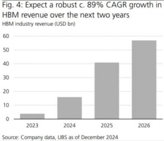 需要の面では、見通しはブラックウェル出荷量の増加により強気を維持しており、これはシステム当たりより高いHBMコンテンツを必要とします。 AI GPUとASICの各次世代は、より速い計算性能に合わせて、システム当たりのHBMコンテンツの大幅な増加をリードしています。 全般的に供給制約の緩和と強固な消費需要の見通しは、強力なHBM収益成長につながる可能性があり、我々は2024年160億ドルから2025年410億ドル(+156%前年比)に増加すると予想し、来年末までに産業DRAM収益の約27%を占めると予想します。 2026 年には、産業収益が 39% 増加し、570 億ドルに達すると予測しています。>>1