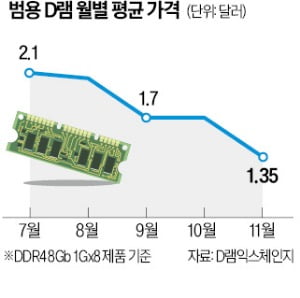29日、市場調査会社のDRAMエクスチェンジによると、PC用汎用DRAM(DDR4 8Gb 1Gx8)のこの日の平均固定取引価格は、前月比20.59%下落した1.35ドルと集計された。 2023年9月(1.3ドル)後最も低い。 DRAM価格は昨年末から今年上半期まで回復傾向を見せたが、9月に17.07%落ち、急落に転じた。