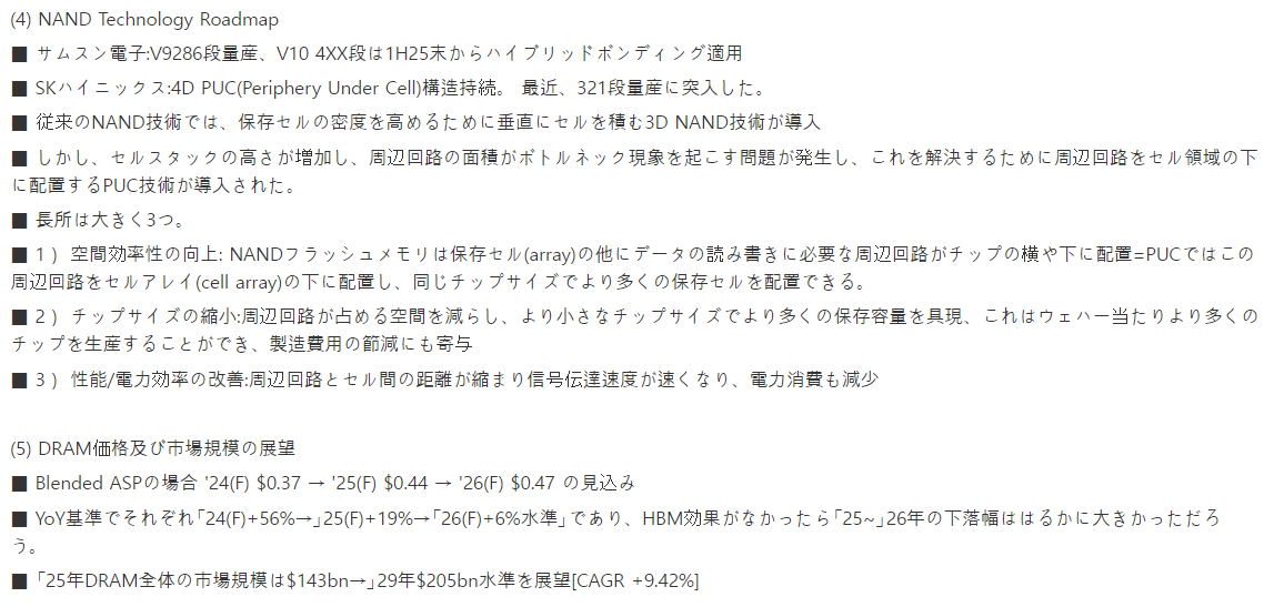 YoY基準でそれぞれ「24(F)+56%→」25(F)+19%→「26(F)+6%水準」であり、HBM効果がなかったら「25~」26年の下落幅ははるかに大きかっただろう。
