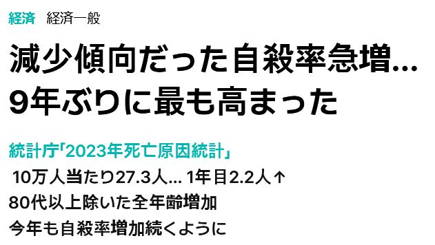 韓国の自殺率、9年ぶり最高水準2024.10.04