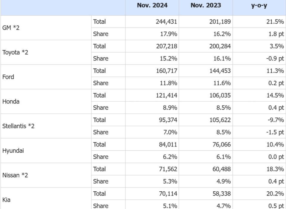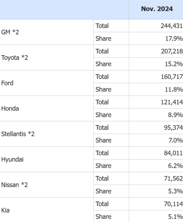 米国新車販売台数(2024年10月)