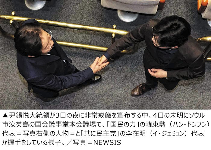 ハン代表はまた、ユン大統領が「戒厳宣布当日、政治家の逮捕を試みた」として「特段の措置なしには状況を打開できない」と強調したと知られた。