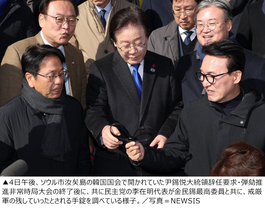 狙いは韓東勲・李在明両代表の逮捕だった? 戒厳軍が現場に落としていった手錠が話題に