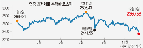 韓国でのみブラック・マンデーが起きた。尹錫悦大統領の弾劾訴追が不発に終わってから初取引日の9日、国内証券市場は年中最低水準に墜落した。これまで株価が急落した際は個人投資家が買い支えてきたが、その個人までもが1兆ウォン以上も株式を投げつけた。尹大統領弾劾訴追案の廃案で不確実性が長期化する恐れがあるという恐怖が作用した結果だ。