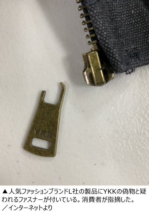 しかし最近、L社の女性用ブランドが、依然として偽物のYKKファスナーを使ったコートを販売しているとの疑惑が消費者の間で再び浮上した。