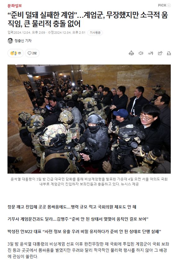 계엄 사태가 종료되자마자 배신한 특수전 사령관을 보면서 이번 계엄이 얼마나 허술하게 진행되었는지를 느껴야 한다.>>12