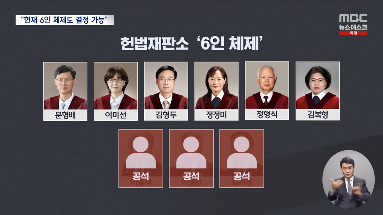 憲法裁判所は「現在も理論的に6人の裁判官全会一致賛成なら弾劾が可能だ」と説明します。6人だけでも心理はもちろん、決定までできるということです。