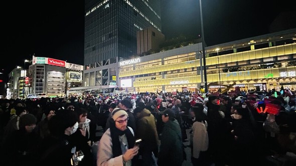 14日午後5時ごろ、東京の新宿駅前。小型スピーカーを通じて、尹錫悦大統領弾劾訴追案の可決のニュースが伝わると、およそ500人が同時に歓声を上げた。「私たちが勝った」という歓喜の声とともに、新宿駅前の道路はお祭り会場のように変わった。ちょうどスピーカーからキム・ヨンジャの「アモール・ファティ」が流れると、参加者たちは赤や黄色の「弾劾ペンライト」を振り、楽しそうに歌った。最近になり「MZ世代の民衆歌謡」と呼ばれるようになったガールズグループ「少女時代」の歌「Into The New World」が続き、場を盛り上げた。ある参加者は演壇に立ち、「いまや内乱首魁の尹錫悦は法の審判を受けることになった」として、「こうしたことを成し遂げたのは大韓民国の国民」だとして歓声を上げた。ある日本人参加者も演壇に立ち、「(弾劾案可決)おめでとう」として、「韓国人の力に心より敬意を表す」と応援した。集会の現場には「私たちはできる」「私たちが成し遂げた」というシュプレヒコールが続いた。