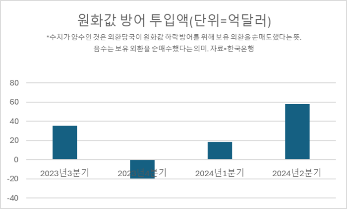 四半期基準でウォン貨価格防御に最も多くの外国為替保有額が投入された時期はレゴランド事態がふくらんだ2022年第3四半期(175億4300万ドル)で、当時四半期平均ウォン貨価格は1337.98ウォンを記録した。
