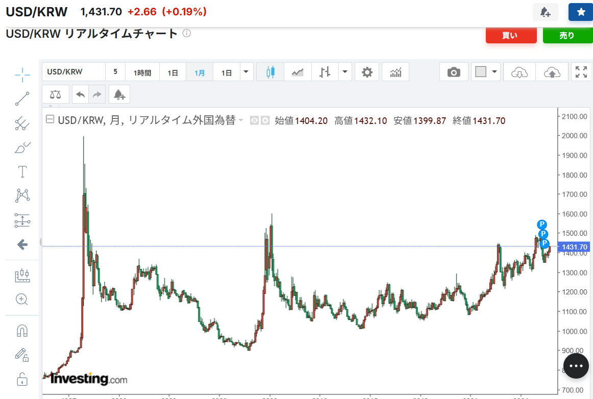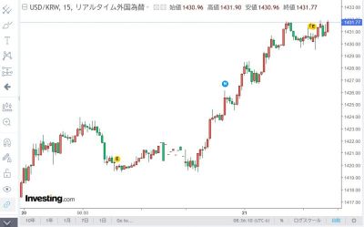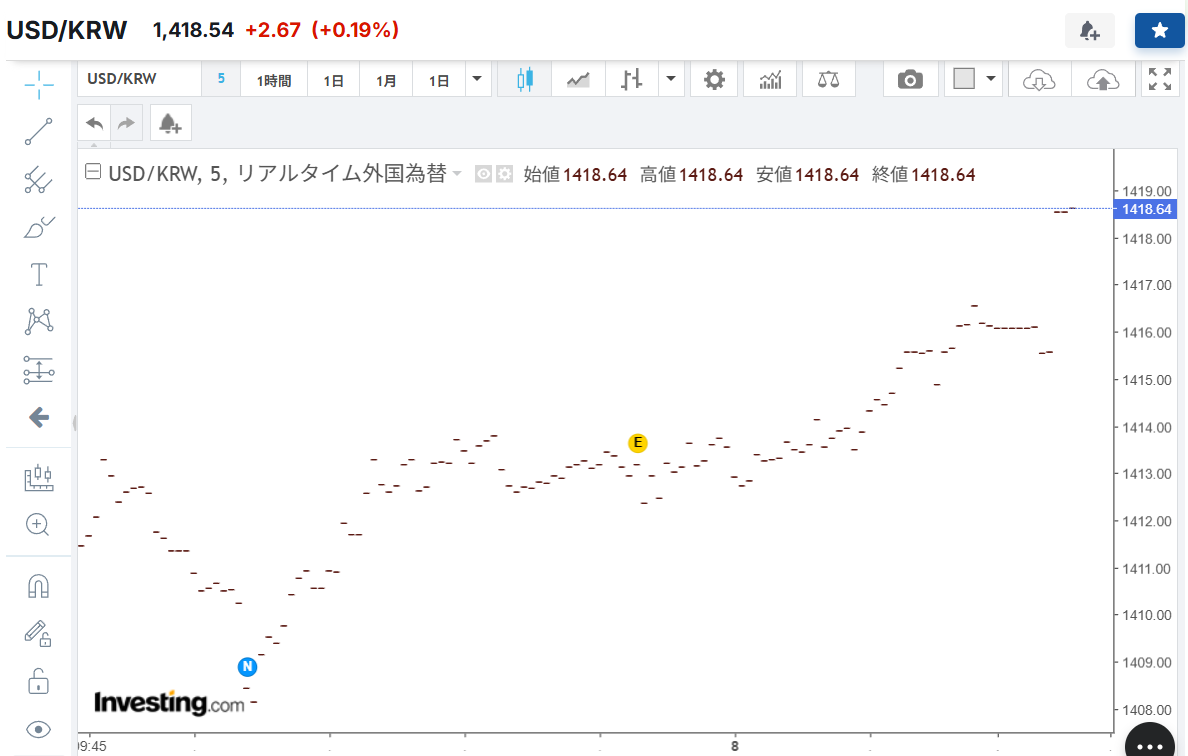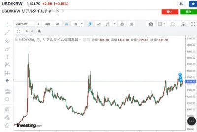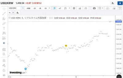1420になりそうううううwwwwUSD/KRW 1,420.02