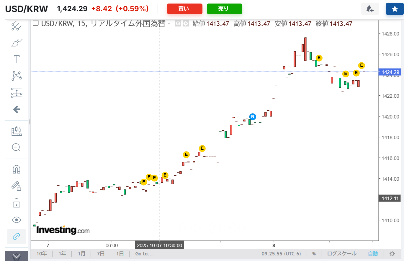 さらに、最近の円安傾向や膠着状態に陥った韓米関税交渉も重なり、ウォン価値は主要国通貨の中でも特に著しい下落を見せている。