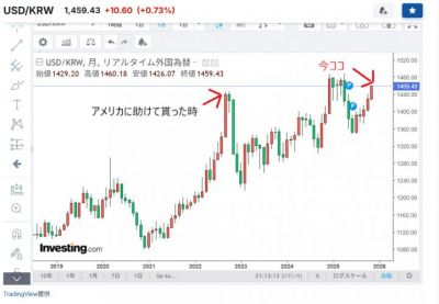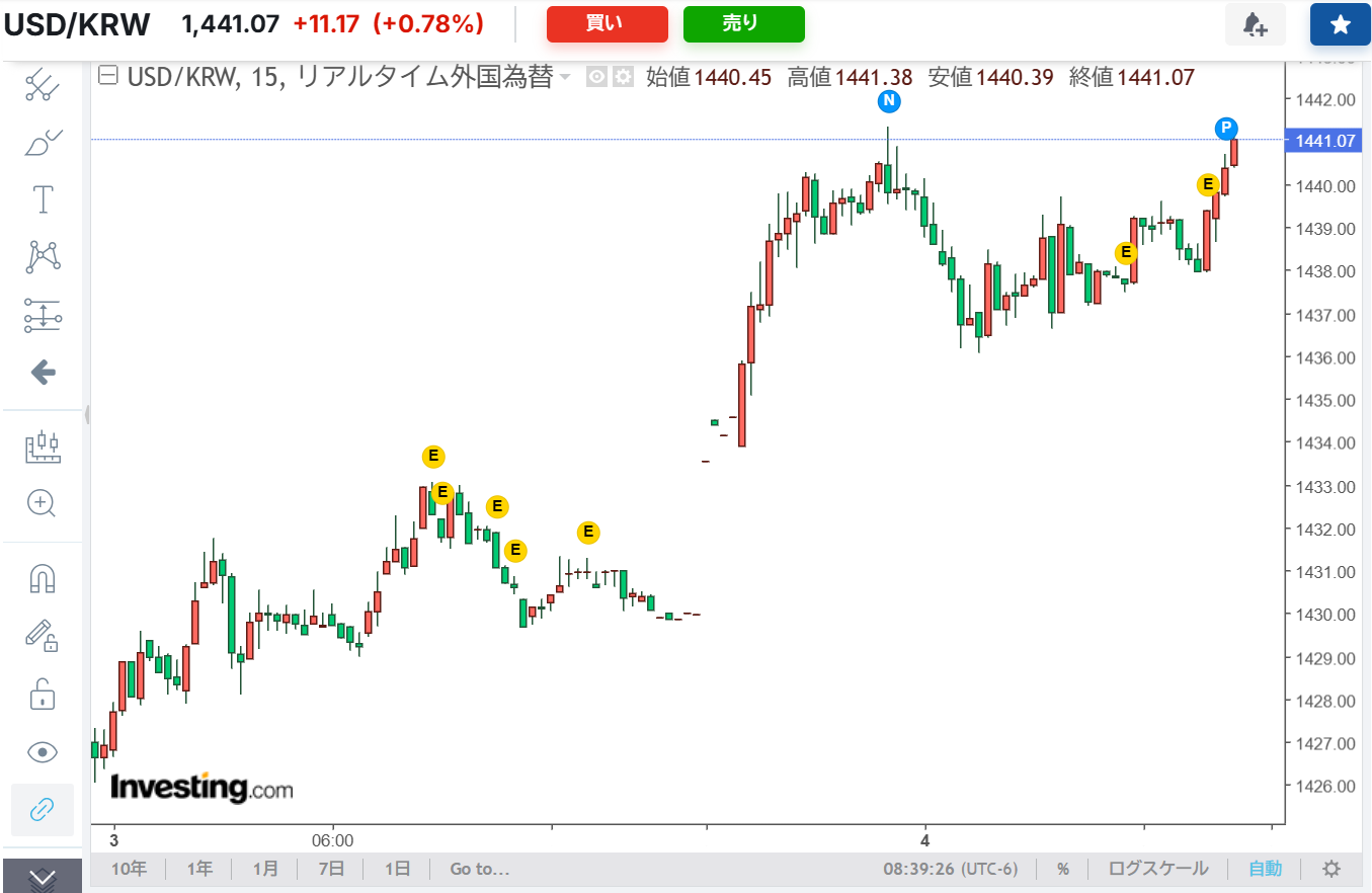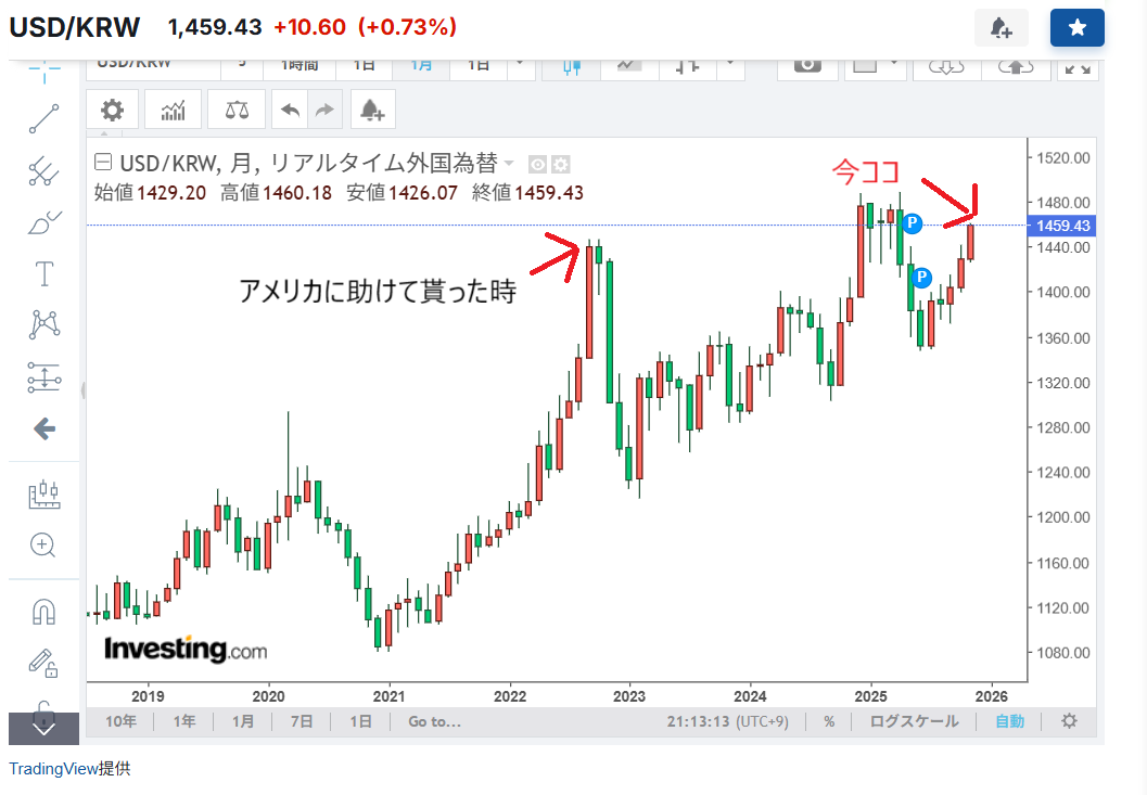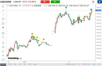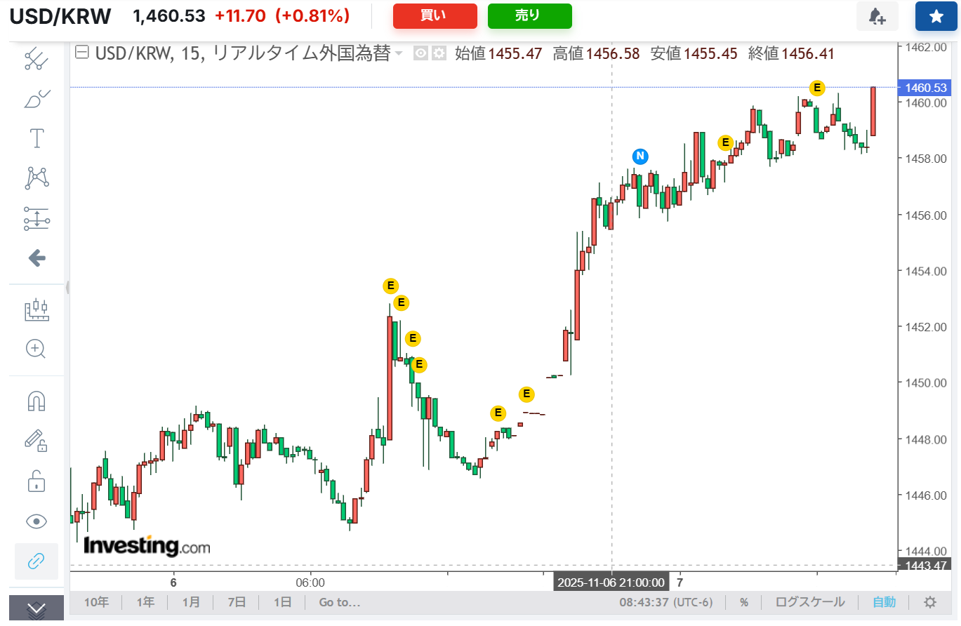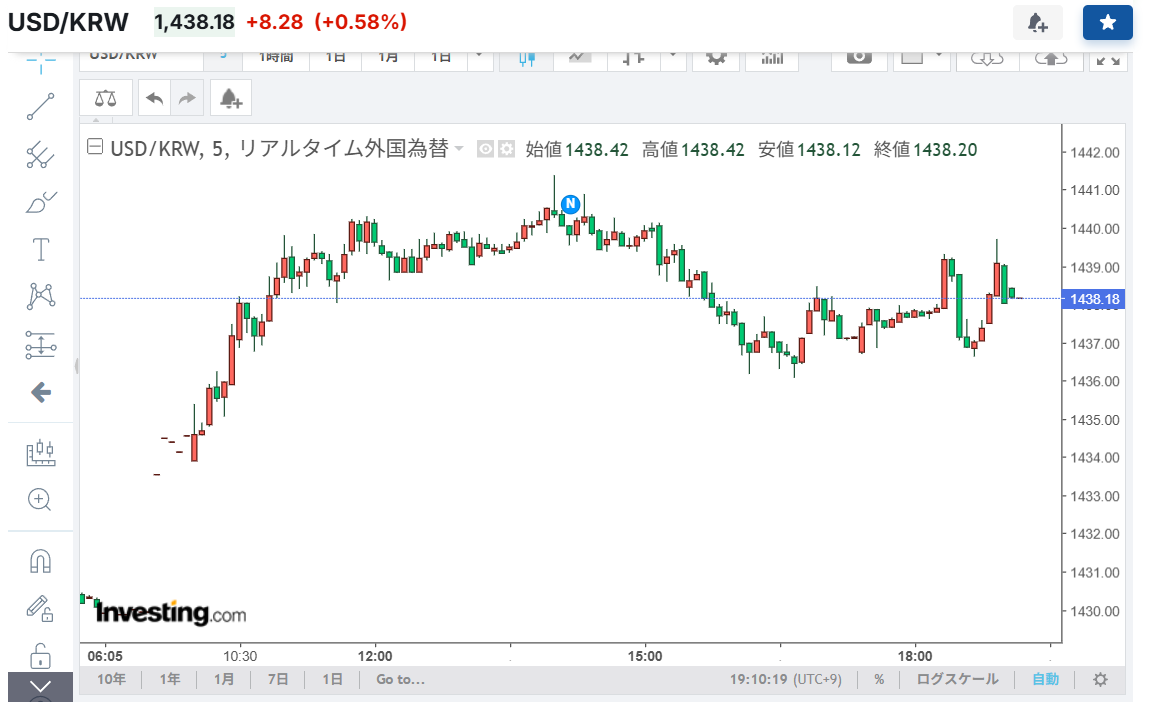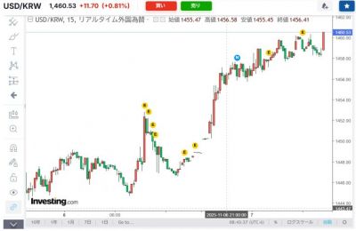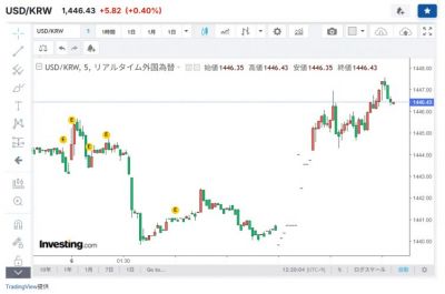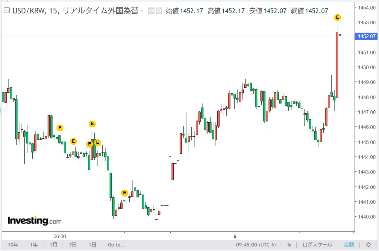 USD/KRW 1,460 こえてたんだねー見逃したー