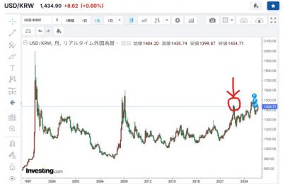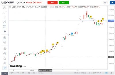 マジかよ、1400が介入のラインだと思ってたんだけどなあれっ、韓銀、弾がなくなった?
